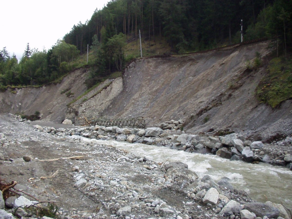 Im Tiroler Oberland haben im Zeitraum 22. – 24. August 2005 intensive Starkniederschläge zu Hochwässern an den verschiedensten Bächen und Flüssen geführt. Das Hochwasser an der Rosanna bewirkte entlang der ÖBB-Strecke zwischen Landeck und St. Anton am Arlberg zahlreiche schwere Schäden an den Uferböschungen.